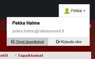 Vaihda käyttäjätunnuksena toimivan rakkausrunot.fi-sähköpostiosoitteen tilalle joku muu toimiva osoite Rakkausrunot.fi-sähköposti jää pois käytöstä. Se on toiminut tämän sivun käyttäjätunnuksena. Voit itse käydä vaihtamassa haluamasi toimivan sähköpostiosoitteen omiin tietoihisi. Sen jälkeen entisen tilalle vaihdettu sähköpostiosoite toimii kirjautumistunnuksena. Omiin tietoihisi pääset sivun oikeasta yläkulmasta kuvan osoittamasta paikasta.
