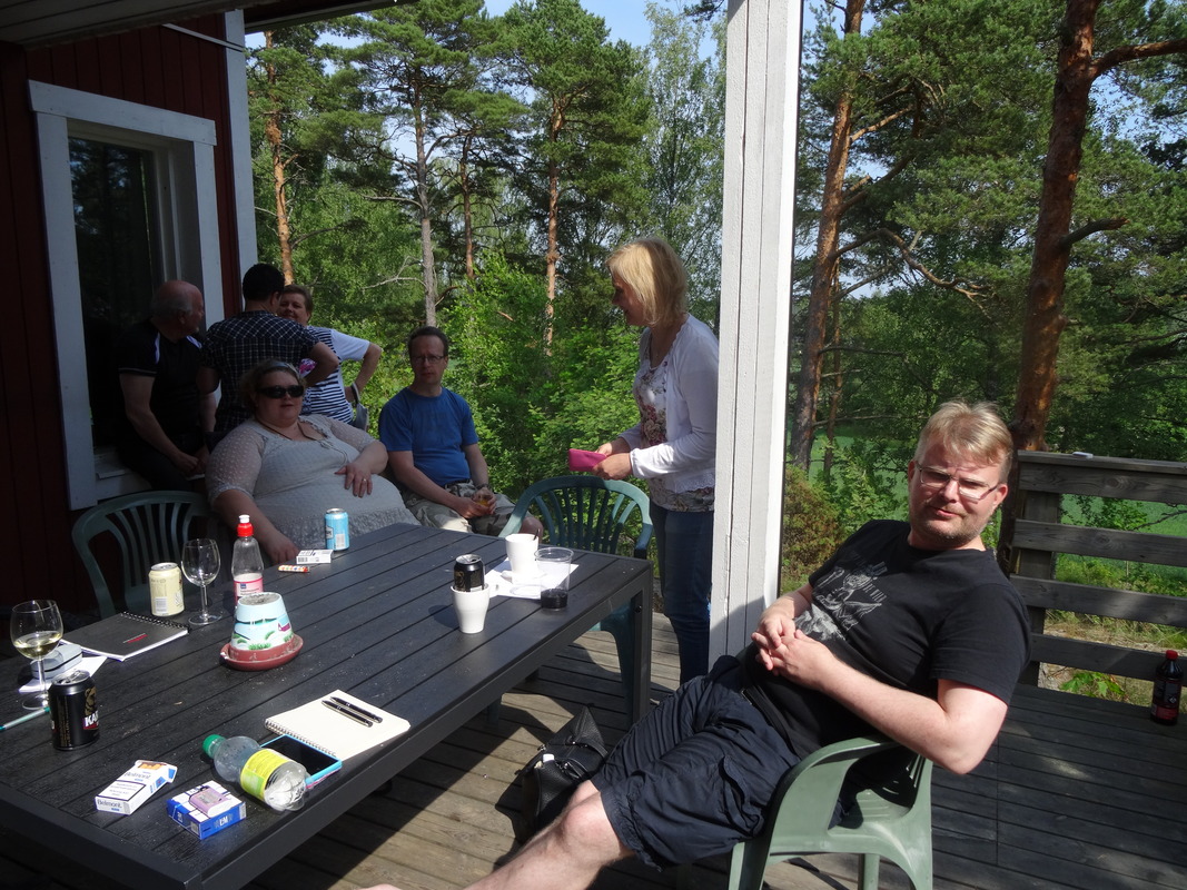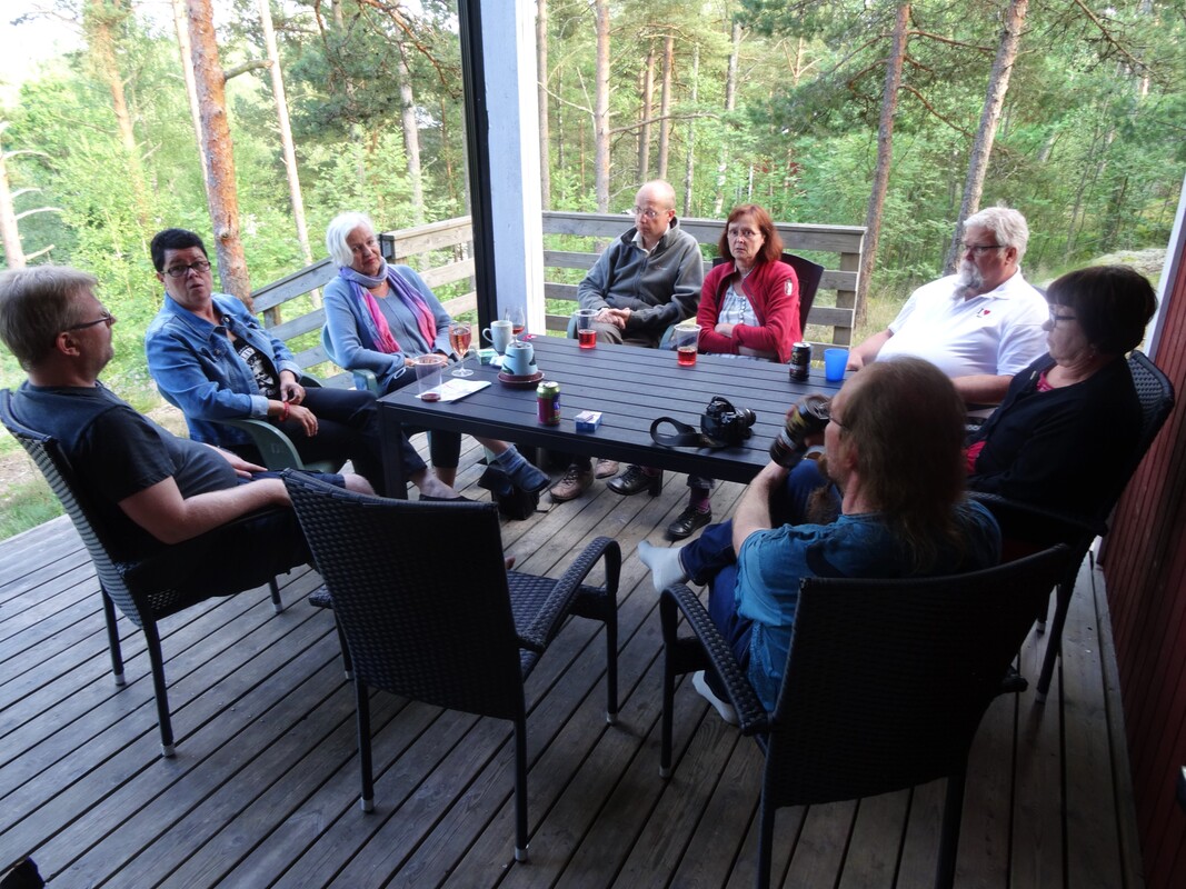 Rakkausrunojen kesämiitillä on jo yli kymmenen vuoden perinne ja tällä kertaa koko viikonlopun mittainen miitti pidettiin Kirjaisten kurssikeskuksessa Nauvon lähistöllä. Majoitukseen meille oli varattu kaksi suurta mökkiä, Knippan ja Villa Diana, ja päärakennuksessa tarjottiin aamupalat ja ruuat. Ensimmäiset ehtivät paikalle jo hyvissä ajoin perjantaina, välttääkseen lauttaruuhkat, ja yllätykseksemme pääsimme mökkeihimmekin jo heti yhden aikaan. Ruokailuun mennessä loputkin perjantaina tulleet ehtivät paikalle ja iltaa jatkettiin Knippanin terassilla istuen. Puheen sorina ja tölkkien sihahtelut täyttivät illan, kun vanhojen tuttujen kanssa vaihdettiin kuulumisia ja tutustuttiin muutamiin uusiin tulokkaisiin. Puusauna lämpeni kahdeksaan mennessä ja osa kävi myös siellä. Runoja intouduttiin kirjoittamaan pikkutunneille saakka jonkun aina antaessa aiheen, otsikon tai muutaman sanan, joista useimmat sitten kirjoittivat. Lauantaina aamiaisella jokainen kävi omaan tahtiinsa ja sen jälkeen tutustuttiin hieman laajemmin saareen, osa luontopolulla, osa rannan kaupan, ravintolan ja vierasvenesataman suunnilla. Muutama miittiläinen saapui paikalle myös vasta lauantaina, samoin saimme muutaman päiväkävijän tervehtimään meitä, pari jopa ihan yllätyksenä. Ja mukava yllätys se olikin :) Yhdistyksen kevätkokous pidettiin kahden aikaan ja loistavan päivällisen jälkeen iltaa jatkettiinkin taas yhdessä terassilla istuen. Puusaunan lisäksi kylpypalju oli koko illan käytössämme ja etenkin miehet sitä myös käyttivät. Runoja kirjoitettiin taaskin monia, nyt muutamia myös kuvien herättämistä ajatuksista. Molempina iltoina grillailtiin terassin hiiligrillillä makkaraa. Sunnuntaina aamiaisen jälkeen alettiin keräillä tavaroita ja osa lähtikin aika pian viimeisten nauttiessa lämmöstä ja seurasta viime hetkiin eli lähes kahteentoista saakka. Tälläkin kertaa miitti täytti kaikki sille asetetut odotukset – mukavaa, leppoisaa seuraa, paljon puhetta, naurua ja runoja, hyvää ruokaa, kauniit maisemat ja muutenkin mukavat puitteet, ja ilmakin helli taas kerran, lämpöä riitti juuri sopivasti. Mukana oli yhteensä 15 miittiläistä ja 4 henkilöä kävi lisäksi lauantaina päiväseltään - Neito68, Erppa, Haaveilija60, Kauris+avec, ninotska, Mimosa, Anjuska+avec, Pattarella, Grobbelaar, Aquarius, Heinikoivu, Tulukset+avec, Mystis, JiiÅå, Waeltaja+avec. Miittiin voivat osallistua ihan kaikki sivustolaiset aveceineen, ja jokainen toivotetaan lämpimästi tervetulleeksi! Liity siis mukaan ensi kerralla :)